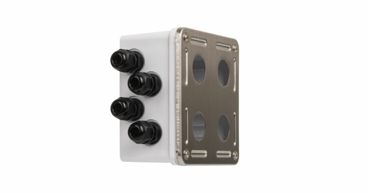 Индустриальный корпус настенной розетки NIKOMAX, 4 порта, под индустриальные модули-вставки, IP67, с герметичными вводами, металлик