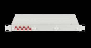 Оптический кросс 19", 1U, укомплектованный на 8 портов FC/UPC(8 одинарных FC/UPC адаптеров), SM 9/125 OS2, стальной, серый, в комплекте: адаптеры, монтажные шнуры 1м, сплайс-кассета с крышкой, гильзы, заглушки
