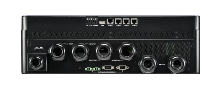 Источник бесперебойного питания длительной автономии. Используется с внешними АКБ. Мощность ВА/Вт 8000/8000; Выходной сигнал Чистый синус; Допустимый диапазон входного напряжения АС, В 90-280; Частота вход/выход - 50 Гц; Выходное напряжение 230 В; Напряжение шины DC, В 48, Время переключения на АКБ, мс <10 ; Минимальное количество батарея для подключения, шт.4; Тип контроллера солнечных панелей MPPT (2х6000 Вт) . Габаритные размеры Ш*Д*В, мм 295*140*468. Вес 12 кг.Регулируемое зарядное устройство; Возможность удаленного мониторинга; Совместимость с генератором; Масштабирование мощности; Возможность работать как солнечная электростанция (без АКБ); Холодный старт.