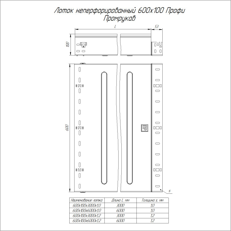 PR16.14033 Лоток неперфорированный Профи INOX (AISI 304) 600х100x6000 (1,0 мм) (12 м/уп) Промрукав