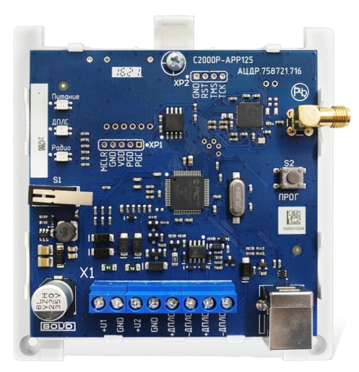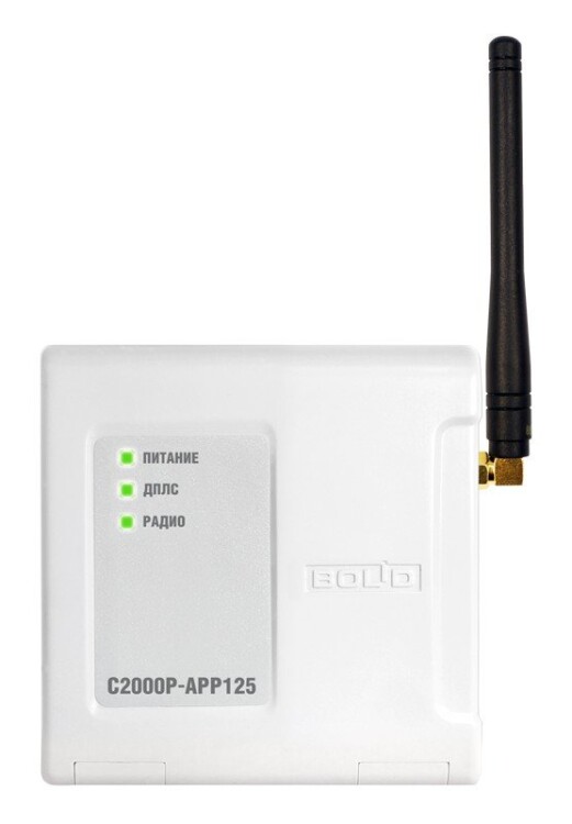 Адресный радио расширитель, обеспечивает подключение до 125 радиоканальных устройств. Десять радио частотных каналов на 868 мГц. Подключается по двухпроводной линии к контроллеру С2000-КДЛ.