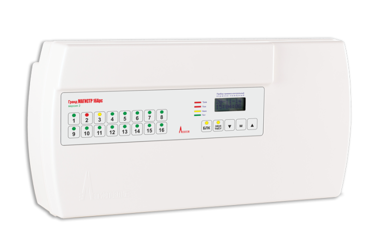 ППКОП; 16 ШС; встроенная клавиатура для управления и программирования; ЖК-дисплей; регистратор на 1024 события; возможность установки SMS модуля; 3 выхода ПЦН; 3 контролируемых выхода "ОК"; порт ТМ; U-пит.130...280 В; под АКБ 12 В/7 Ач; I-потр.210 мА; вход внешнего РИП 12 В; выход питания внешней нагрузки 12 В/1 А; t-раб.+5...+50°C, 322х167х89 мм Прибор предназначен для контроля шлейфов сигнализации с установленными в них охранными или пожарными извещателями, технологическими датчиками, а так же выдачи тревожных извещений и управления выносными оповещателями. Цепи всех оповещателей контролируются на обрыв и короткое замыкание.