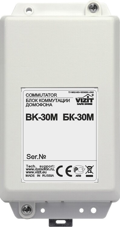 Блок коммутации домофонов VIZIT БК-30М предназначен для подключения абонентских устройств к подъездной линии связи домофонов VIZIT. количество подключаемых УКП - не более 30