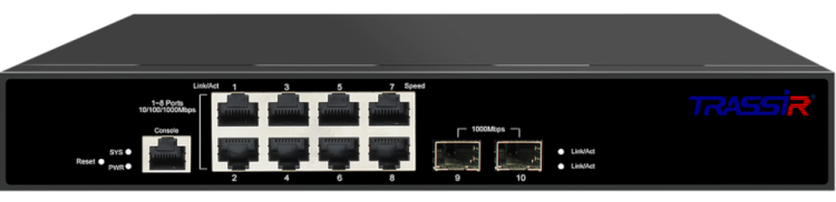 Управляемый коммутатор TRASSIR с 8 PoE портами (10/100/1000 Мбит/с Base-T PoE port),и 2 SFP портами, стандарты PoE EEE802.3af, EEE802.3at, максимальная мощность на порт 30Вт, общая - 120 Вт. Максимальная потребляемая мощность 120 Вт. Дальность передачи PoE до 250 метров. Молниезащита. Рабочая температура: 0...45С. Габариты: 270х44.5х180.