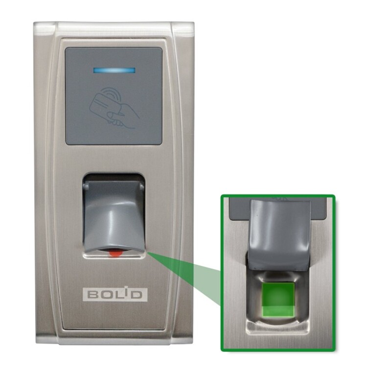 Считыватель отпечатков пальцев с контроллером. Интерфейс - Ethernet. Объем памяти - 1500 отпечатков пальцев, 100 тыс. событий. Встроенный считыватель проксимити карт. Голосовое оповещение