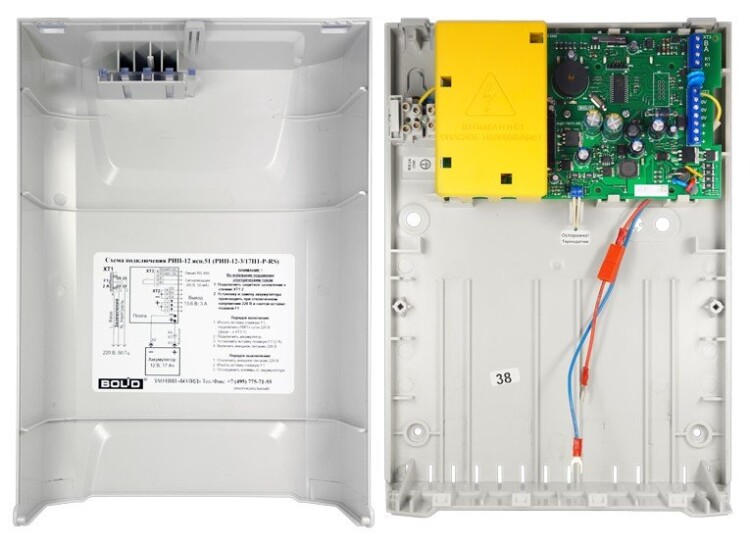 Резервированный источник питания, 12 В, 3 А (2 мин-4 А), передача данных и управление по интерфейсу RS-485, световая и звуковая индикация режимов, возможность установки аккумулятора 17 Ач, защита от переразряда. Пластмассовый корпус. Соответствие "Техрегламенту пожарной безопасности"