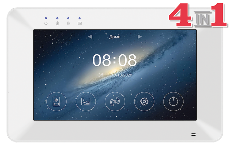 Монитор цветного видеодомофона 7 дюймов, с поддержкой форматов CVBS и 720p/1080p (AHD/CVI/TVI), емкостной сенсорный экран разрешение 1024x600, hands free. Подключение 2-х вызывных панелей, 2-х видеокамер, до 6-ти мониторов в параллель. Встроенная память на 100 фото. Запись фото или видео на microSD карту до 128 ГБ (в комплект не входит). Запись по детектору движения, по одному каналу. Питание: 220/15В, Габариты: 222х154х15мм. Выход HOOK для работы с блоками сопряжения подъездных домофонов.