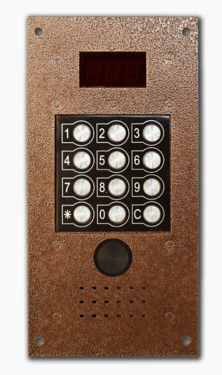 Многоабонентский аудио блок вызова с цифровой адресацией, до 255 абонентов (999 при работе с БКЗ-3А). Вводимые номера: от 1 до 999. Работа с идентификаторами EM-Marine, функции *АНТИКЛОН* и *АВТОСБОР*, память ключей: 2044 (4092 или 8188 при замене микросхемы памяти). Постоянная светодиодная подсветка клавиатуры. Встроенная плата снятия остаточной намагниченности. U-пит.пост. 15 В, I-потр. 0,3 А (без учёта эл.магн. замка). t-раб. -30…+40°С, габ.размеры 220х110х32 мм. Цвет корпуса: медный антик (порошковое покрытие).