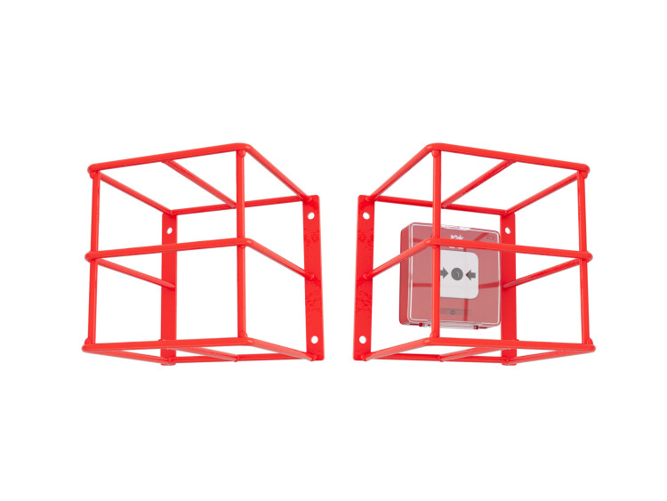 Защитный кожух для ручных пожарных извещателей с открывающейся крышкой; сталь 6 мм, основание полоса 20х4 мм; 150х150х160 мм. Цвет красный.