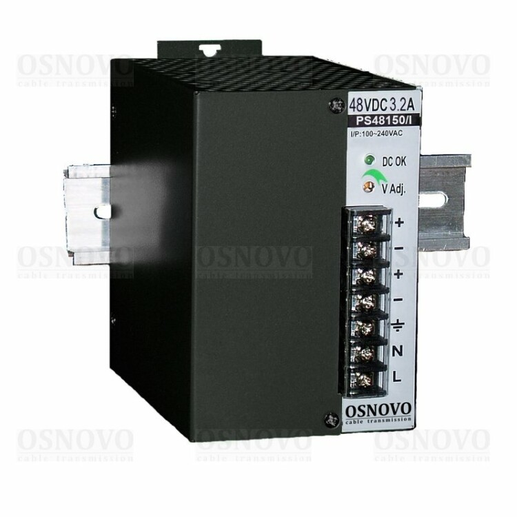 PS-48240/I Промышленный блок питания. DC48V, 5A (240W). Входное напряжение AC195-265V. КПД: 84%. Регулировка выходного напряжения в диапазоне 45-53V. Защита от короткого замыкания, перенапряжения и перегрузки. Принудительная система охлаждения (вентилятор). Монтаж на DIN-рейку или стену. Размеры (ШxВxГ): 75x110x121мм. Рабочая температура: -40...+50°C.