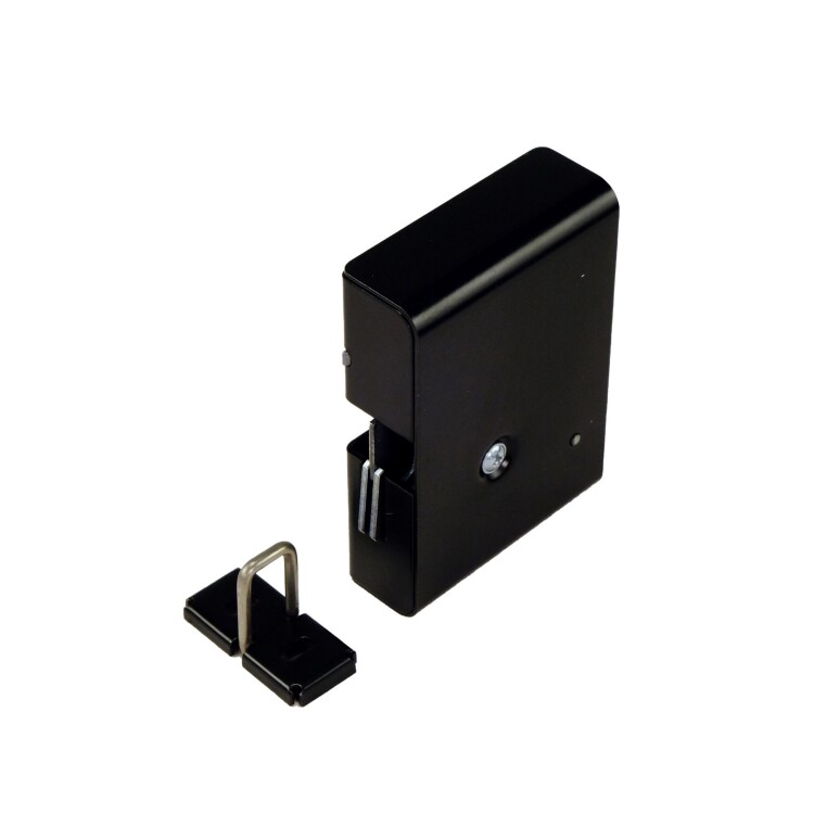 Электромеханический замок с толкателем и датчиком положения двери. Усилие удержания ригеля 250 кг. Нормально закрытый, DC 24В/0,27 А (1 сек), -30...+50°C, цвет - черный
