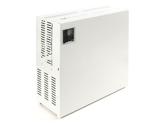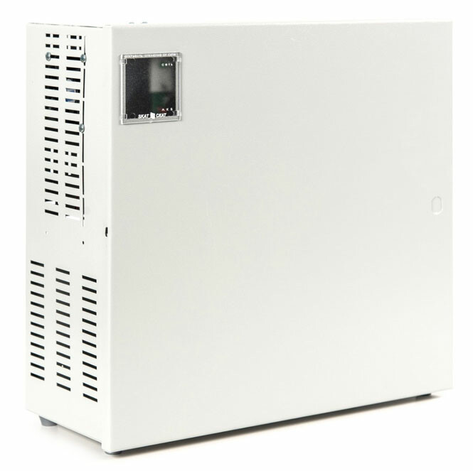 48 В, 9А. Для построения систем питания удаленных объектов совместно с преобразователями напряжения. Максимальная мощность 500 ВА. Защита выходов от перенапряжения, защита АКБ, релейные выходы о состоянии сети и АКБ, АКБ-до 17Ач(4шт)