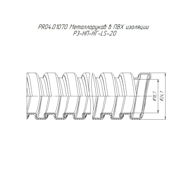 PR04.01070 Металлорукав в ПВХ изоляции Р3-НП-НГ-LS-20 (50м/уп) Промрукав