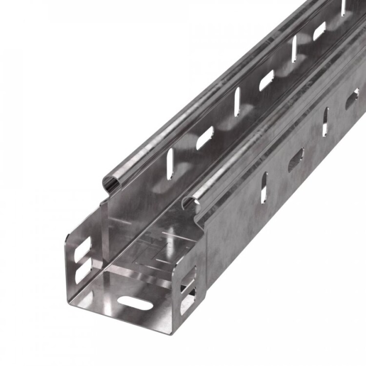 Металлический лоток серии "Стандарт" - это комплексная система, предназначенная для прокладки электрических силовых кабельных трасс, систем связи, пожарной и охранной сигнализации внутри и снаружи помещений. Лотки соответствуют основным техническим требованиям ГОСТ 20783-81 на «Лотки для металлических электропроводок». Серия "Стандарт" имеет ряд уникальных особенностей: соединение "папа-мама"; продольные ребра жесткости на стенках лотка значительно увеличивают прочностные характеристики лотка на изгиб и усталостную прочность; сплошная перфорация по основанию, которая обеспечивает вентиляцию кабеля; боковая перфорация в виде отверстий по всей его длине, что облегчает монтаж лотка, разрезанного на нестандартные сегменты, а так же служит для крепления и монтажа распределительных коробок; крышка фиксируется на защелках (без винтов и фиксаторов).
