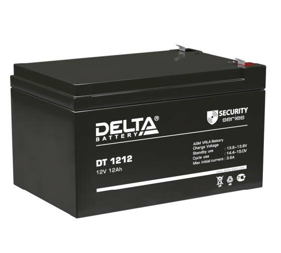 Свинцово-кислотные аккумуляторы DELTA серии DT специально разработаны для применения в слаботочных системах и оптимизированы для работы в буферном режиме. Изготавливаются по технологии AGM. Технические характеристики: номинальное напряжение 12В; срок службы 5 лет; номинальная емкость (25°С) 20 часовой разряд - 12 Ач, 10 часовой разряд - 11,4 Ач, 5 часовой разряд - 10,6 Ач; внутреннее сопротивление полностью заряженной батареи (25°С) - 25 мОм; саморазряд 3% емкости в месяц при 25°С; макс.разрядный ток (25°C) 165 А (5с); рабочий диапазон температур: разряд -15~50°C; заряд -10~50°C; хранение -20~50°C; зарядные параметры: циклический режим (2,35?2,4 В/эл) - температурная компенсация 30 мВ/°С; буферный режим (2,25?2,3 В/эл) - температурная компенсация 20 мВ/°С; габариты (±2мм): длина 151 мм; ширина 98 мм; высота 94 мм; полная высота 100 мм