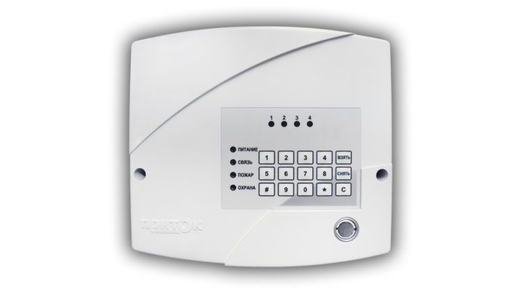 Работа с ретрансляторами Приток-А, Приток-А-Ф, Приток-А-Ю, 3 шл ОПС, 1 шл.ТС, 1 раздел, общее или с пропуском 2 или 3-го шл. взятие/снятие, тактика выносного индикатора "квартира"/"объект", встроенная клавиатура, подключение дополнительной клавиатуры, возможность режима частичной охраны, аккумулятор 2,2 А*ч