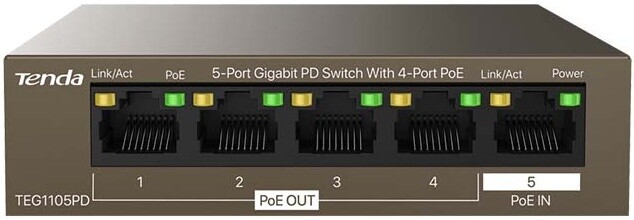 Коммутатор PoE TEG1105PD, отличающийся низкой стоимостью, высокой производительностью и функцией Plug & Play, представляет собой одновременно PSE и PD, предназначенный для таких сценариев сетей видеонаблюдения, как дороги в парках/скверах, средние и крупные фабрики и колледжи. Коммутатор небольших размеров и его можно легко установить в водонепроницаемом боксе на открытом воздухе. Коммутатор имеет четыре порта PoE OUT 10/100/1000 Мбит/с (порты с 1 по 4), совместимые с IEEE 802.3af, и один порт PoE IN 10/100/1000 Мбит/с (порт 5), совместимый с IEEE 802.3af/at. Максимальная выходная мощность PoE всего коммутатора составляет 30 Вт. Коммутатор может подавать питание и передавать данные на маломощные точки доступа и IP-камеры через кабели CAT5, что значительно снижает стоимость развертывания сети. Это идеальный выбор для проводных сетей в сценариях мониторинга на средних и больших расстояниях.