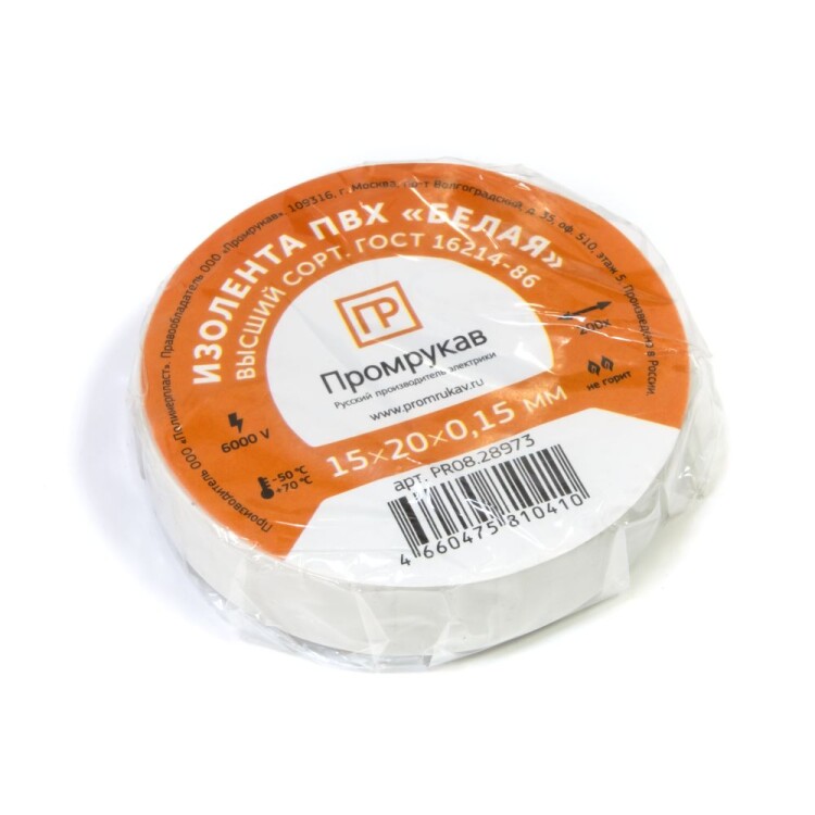 PR08.28973 Изолента ПВХ белая 0,15 x 15 мм х 20 м Промрукав