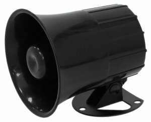 Оповещатель звуковой рупорного типа, 110 дБ, U-пит.12 В, I-потр.0.7 А, IP50, t-раб.-10…+55°C, 105х101х101 мм, чёрный.