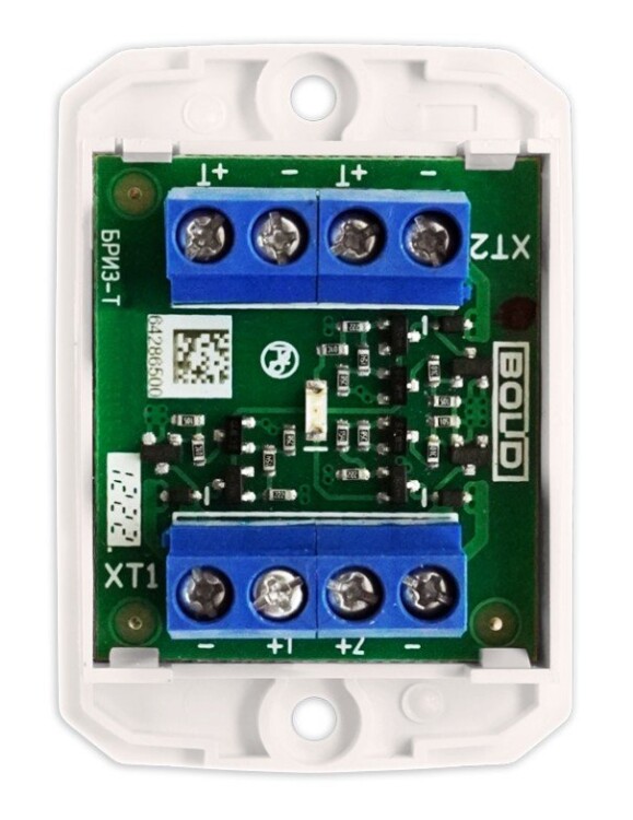 Блок разветвительно-изолирующий. Подключение ответвления. Обеспечивает изоляцию короткозамкнутого участка двухпроводной линии связи и ответвления с последующим автоматическим восстановлением после устранения неисправности.