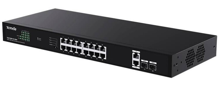 Tenda TEG1120P-16-150W - это устройство с 18 портами Ethernet и 2 портами SFP. Порты Ethernet поддерживают питание PoE и могут обеспечить стабильную подачу питания и передачу данных для устройств, таких как HD PoE IP камеры и точки доступа. Максимальная мощность, которую может обеспечить коммутатор, составляет 130 Вт.