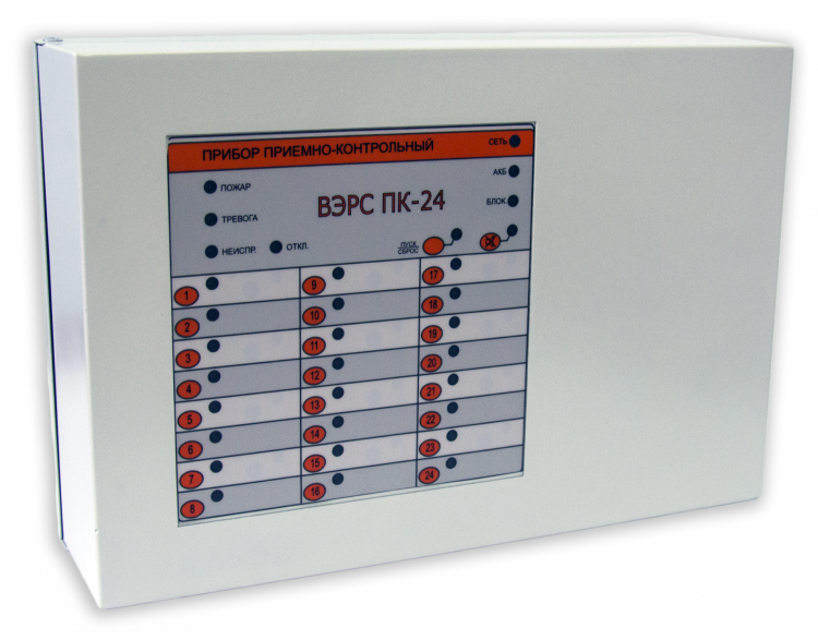24 ШС (охранные, пожарные, технологические), 3 реле ПЦН (одно реле: ~250В/7А; два реле: ~120В/2А,), выходы на оповещатели ОК с током нагрузки до 1А, высокоэффективный импульсный источник питания (135-242В), АКБ 7 А*ч, клеммы для подключения внешнего РИП, конфигурирование кнопками прибора и/или через персональный компьютер (ПО "ВЭРС-ПК Prog"), встроенный порт USB, подключение внешних блоков по RS-485. Металлический корпус. АКБ в комплект поставки не входит