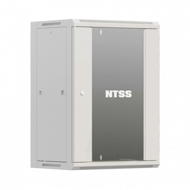 Разобранный настенный шкаф NTSS серии «W» с передней дверью, открываемыми боковыми стенками на защелках, задней стенкой и панелями пола и потолка. В комплекте 1 пара 19” профилей, уголки для поддержки оборудования.
