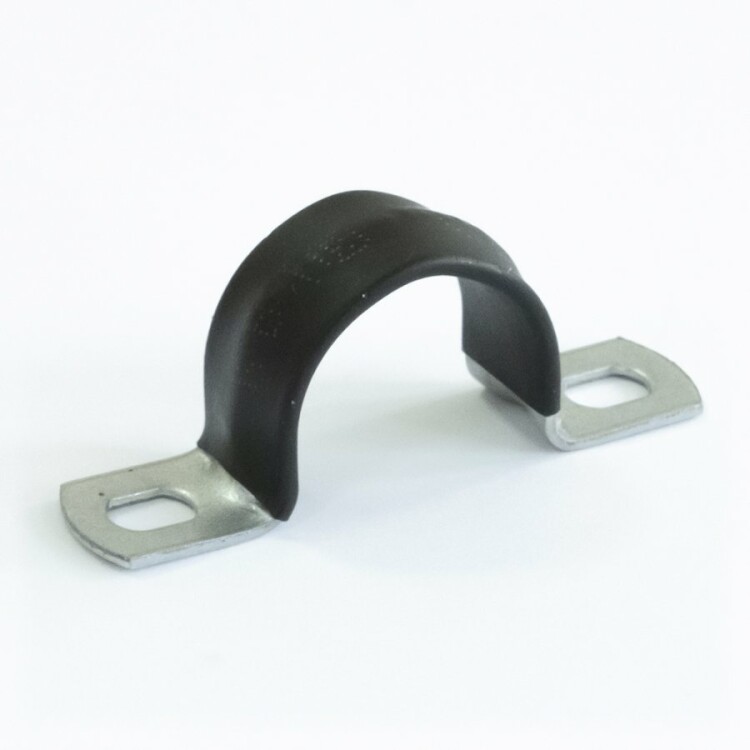 Скоба металлическая двухлапковая с полимерным покрытием для прокладки и крепежа кабельных линий, металлорукавов в ПВХ-изоляции, полимерных и стальных труб.