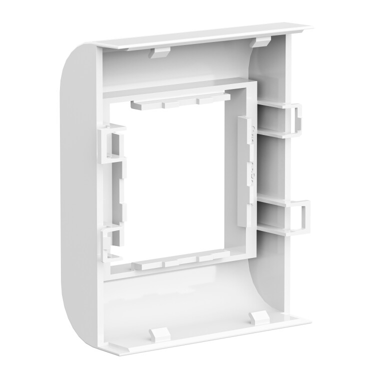 короба, тип TA-GN серии "In-liner Classic". Монтаж: монтаж суппорта внутри короба с помощью защелкивания, монтаж электроустановочных изделий в рамку ? защелкиванием изнутри. Характеристики: материал - АБС-пластик и поликарбонат. Комплектация: рамка; суппорт. Типоразмер короба: 80х40, 80х60. Кол-во модулей: 2. Цвет: белый.