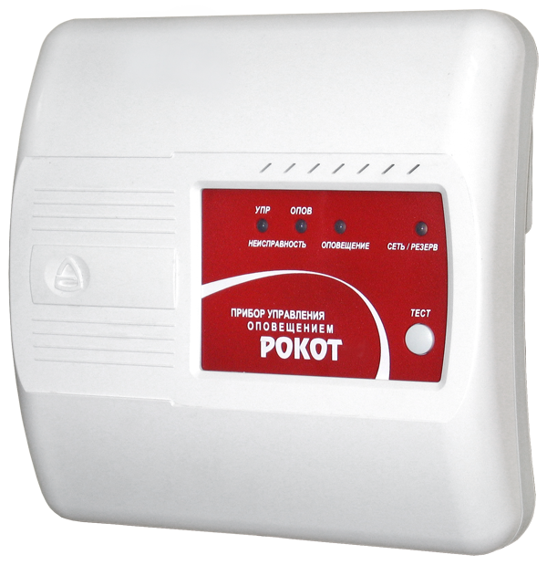 Прибор управления оповещением «Рокот» в составе системы речевого оповещения пожарной «РОКОТ» предназначен для трансляции предварительно записанного речевого сообщения при возникновении пожара или других экстремальных ситуаций.Прибор работает с акустическими системами «АС-2-1», «АС-3-1», «АС-3-3», «АС-2-2», «АС-3-2», «АС-3-4», а так же «АС-2-3» и «АС-2-4» (без подключения светового канала), подключёнными с помощью соединительных линий (линий оповещения).Прибор предназначен для установки внутри защищаемого объекта и рассчитан на круглосуточную непрерывную работу.Прибор предназначен для работы совместно с приемно-контрольными пожарными приборами серий «Гранит», «Карат», «Кварц», «Пирит» или аналогичными приборами других производителей, имеющими выход включения оповещения типа «открытый коллектор» либо «нормально разомкнутые контакты реле». 2 сообщения по 8 сек, 8 Вт