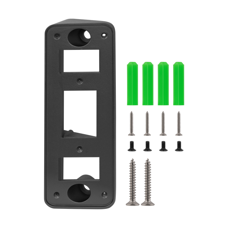 Прочный металлический корпус надежно защищают устройство от внешних воздействий, а угловое крепление, идущее в комплекте, позволят установить вызывную панель в любом месте.