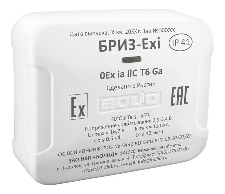 Блок разветвительно-изолирующий с видом взрывозащиты "искробезопасная цепь". Обеспечивает изоляцию короткозамкнутого участка двухпроводной линии связи контроллера С2000-КДЛ с последующим автоматическим восстановлением после устранения неисправности. Подключается к С2000-КДЛ через барьер искрозащищенный "С2000-Барьер-Exi" или "С2000-Спектрон-ИБ"