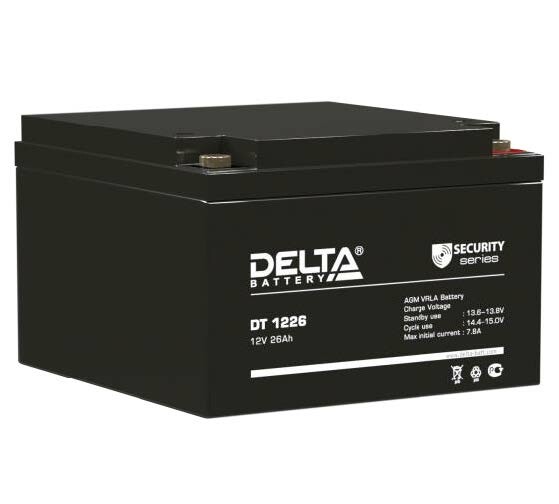 Свинцово-кислотные аккумуляторы DELTA серии DT специально разработаны для применения в слаботочных системах и оптимизированы для работы в буферном режиме. Изготавливаются по технологии AGM. Технические характеристики: номинальное напряжение 12В; срок службы 5 лет; номинальная емкость (25°С) 20 часовой разряд -26 Ач, 10 часовой разряд - 24,6 Ач, 5 часовой разряд - 22,6 Ач; внутреннее сопротивление полностью заряженной батареи (25°С) - 11 мОм; саморазряд 3% емкости в месяц при 25°С; макс.разрядный ток (25°C) 390 А (5с); рабочий диапазон температур: разряд -15~50°C; заряд -10~50°C; хранение -20~50°C; зарядные параметры: циклический режим (2,35?2,4 В/эл) - температурная компенсация 30 мВ/°С; буферный режим (2,25?2,3 В/эл) - температурная компенсация 20 мВ/°С; габариты (±2мм): длина 167 мм; ширина 175 мм; высота 126 мм; полная высота 126 мм