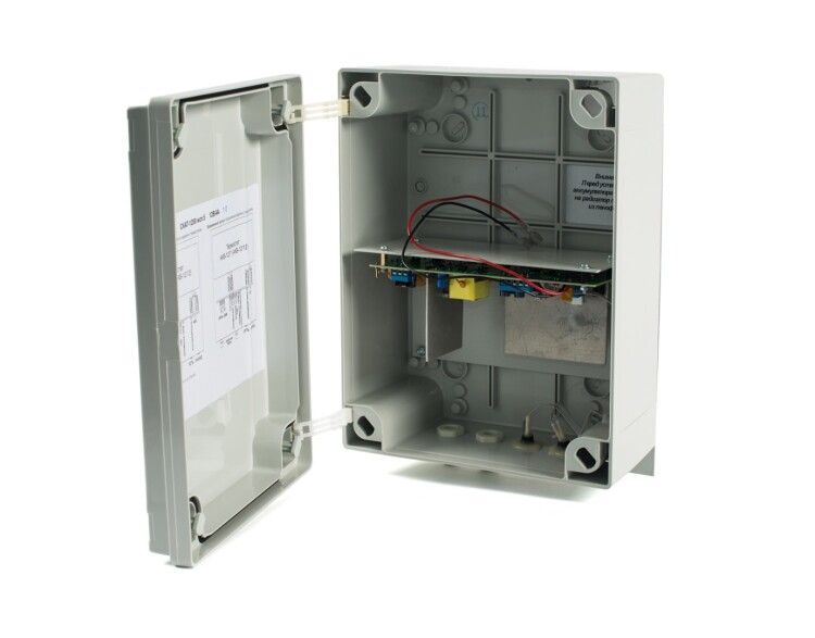 12В 4А (без учета тока на подогрев АКБ) уличное исполнение, корпус класса защиты IP56, рабочий температурный диапазон от - 40 °С до + 50 °С, диапазон входного напряжения 170-250В Корпус под термостат 7 или 12 Ач