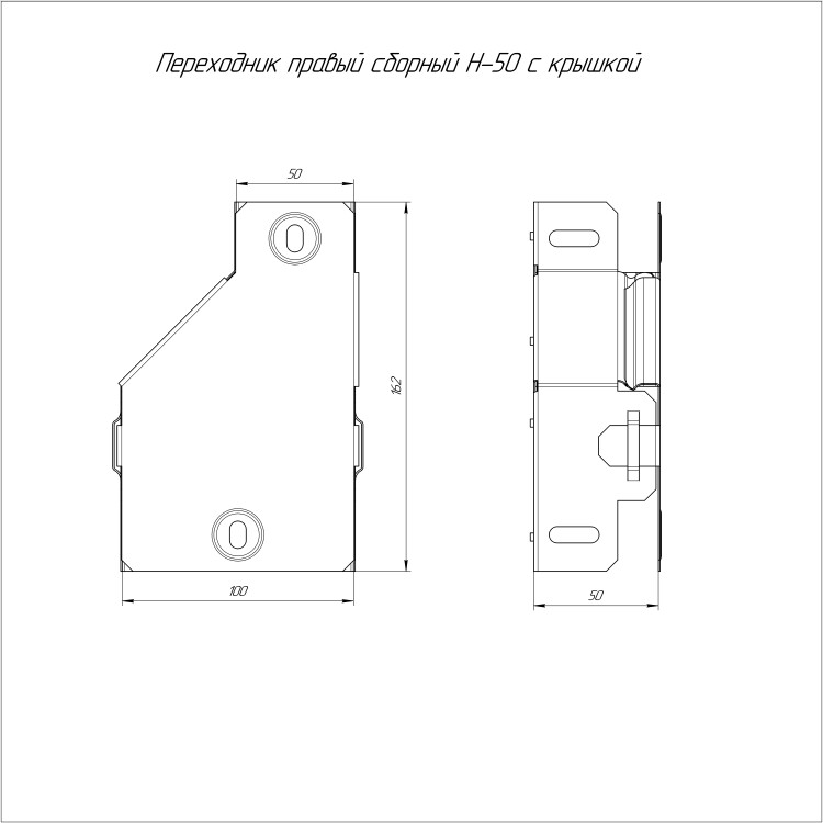 Переходник правый предназначен для перехода с одной ширины лотка на другую. В комплект входит крышка.