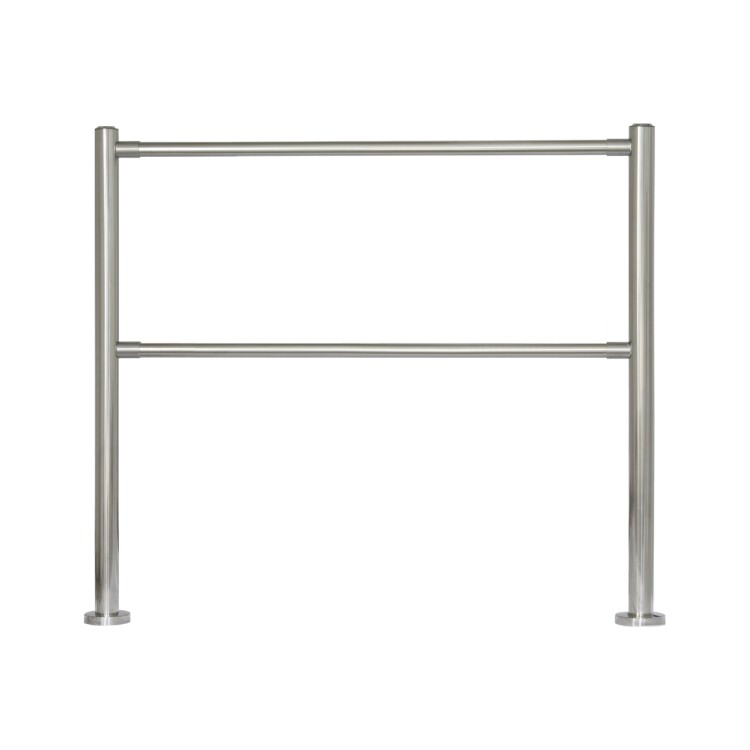 Комплект модульного ограждения 3V (нерж.) 1 м состоит из двух поручней с четырьмя стальными стаканами (по два на поручень).