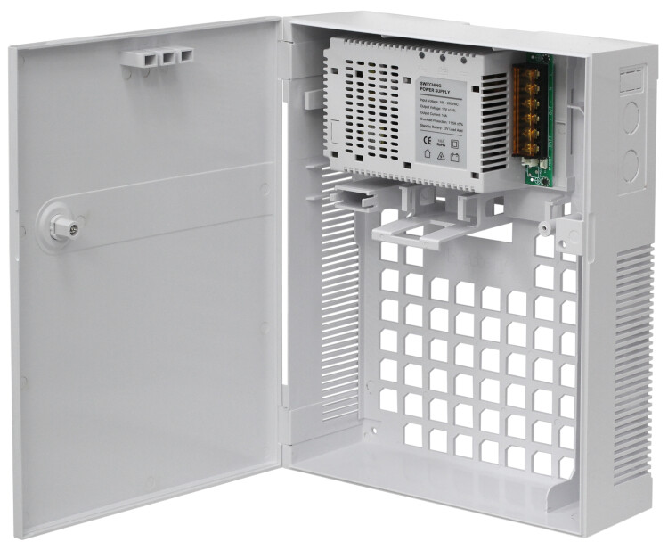 Резервированный источник питания; U-вх.190…265 В, U-вых.13.0…13.8 В, I-ном.10 А, I-max.11 А; под АКБ 12 В 17 А·ч; световая индикация режимов работы; защита от короткого замыкания, защита аккумулятора от глубокого разряда и чрезмерного заряда, переполюсовки; кнопка запуска от АКБ; t-раб.-20…+50°C, 235х300х90 мм. Пластиковый корпус.