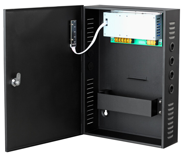 Резервированный источник питания; U-вх.190…265 В, U-вых.13.0…13.8 В, I-ном.10 А, I-max.11 А; под АКБ 12 В 17 А·ч; световая индикация режимов работы; защита от короткого замыкания, защита аккумулятора от глубокого разряда и чрезмерного заряда, переполюсовки; кнопка запуска от АКБ; t-раб.-20…+60°C, 285х395х90 мм. Металлический корпус.