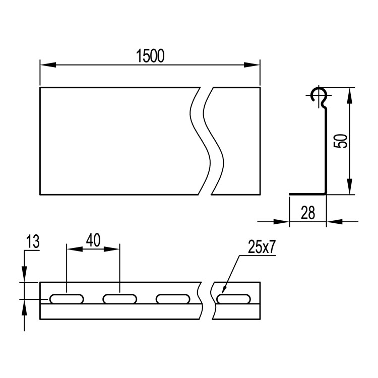 Они изготовлены из стали толщиной 0,8 мм, имеют по длине ряд отверстий для крепления размером 7х25 мм. Перегородки крепятся к лотку с помощью винтов М6х10 и гайками М6 с насечками. Длина - 3000 мм, высота - 50 мм.