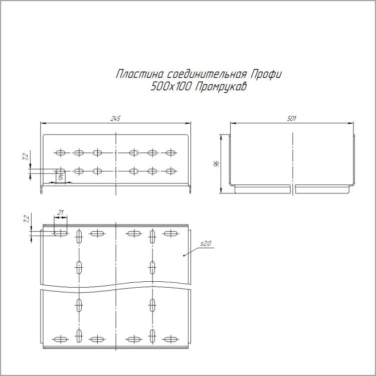 PR16.21471 Пластина соединительная Профи INOX (AISI 304) 500х100 (2,0 мм) Промрукав