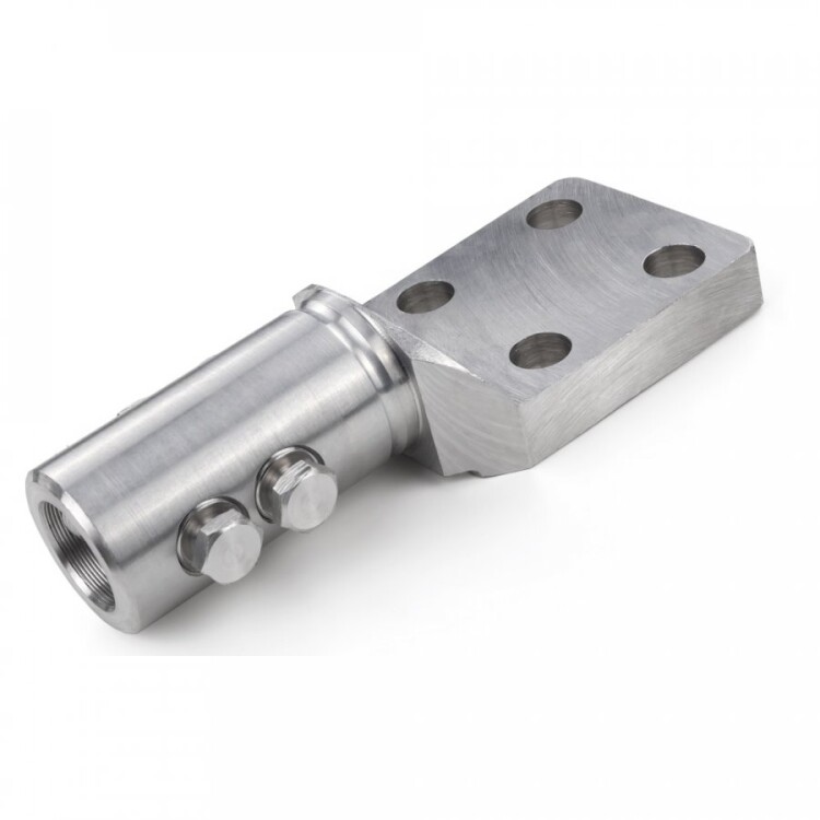 - Болты в корпусе расположены в одной плоскости на симметрично противоположных сторонах относительно жилы кабеля, что позволяет добиться универсальности применения наконечника для любого типа жилы.