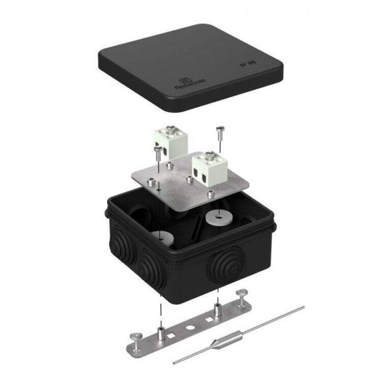 40-0210-9005-FR1.5-4-П Коробка огнестойкая для о/п Е15-Е120 с термопредохранителем RAL9005 80х80х40 Промрукав