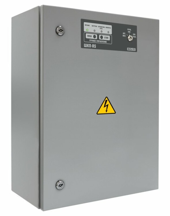 Блок контрольно-пусковой для управления исполнительными устройствами напряжением до 380В, мощностью до 75 кВт, с устройством плавного пуска, возможность контроля до 7 технологических шлейфов, два интерфейса RS485, защита оболочки - IP54