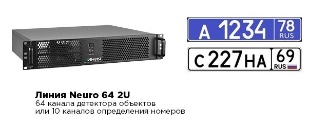| Каналы видеонаблюдения | 64 для детекции объектов / 10 для распознавания номеров |