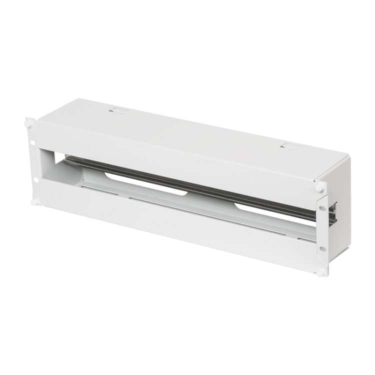 Панель 19" с DIN-рейкой, 3U, Ш481хВ133хГ97мм, серая. Панель 19" с DIN-рейкой, 3U предназначена для организации ввода внешнего электропитания в шкафы и стойки. Позволяет разместить до 25 автоматов шириной 17,5 мм электропитания по стандарту DIN 43880. Панель 19" с DIN-рейкой, 3U состоит из корпуса с установленной в нём DIN-рейкой длиной 443 мм и двух легкосъёмных крышек, установленных сверху и снизу. Корпус на торцах имеет крепёжные отверстия для монтажа панели на 19” направляющих. Сзади корпуса выполнены 4 паза (150х32 мм) для подвода-вывода кабелей. На передней части панели сверху и снизу установлены легкосъёмные крышки на защёлках. Конструкция позволяет беспрепятственно осуществлять выводы кабелей.