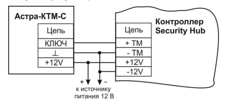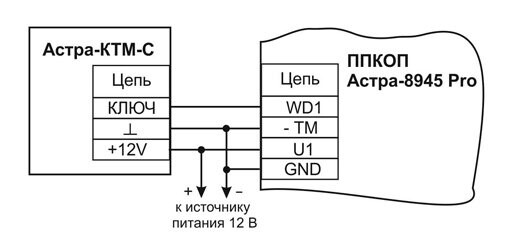 управление ППКУП Астра-8945 Pro, Астра-812 Pro, контроллером Security Hub, а также устройствами Астра-713 Астра-814 Pro, Астра-863 исп. А, Астра-863 исп. Б, УОО Астра-Y путем ввода PIN-кодов,эмулирует прикладывание ключа Touch Memory к считывателю