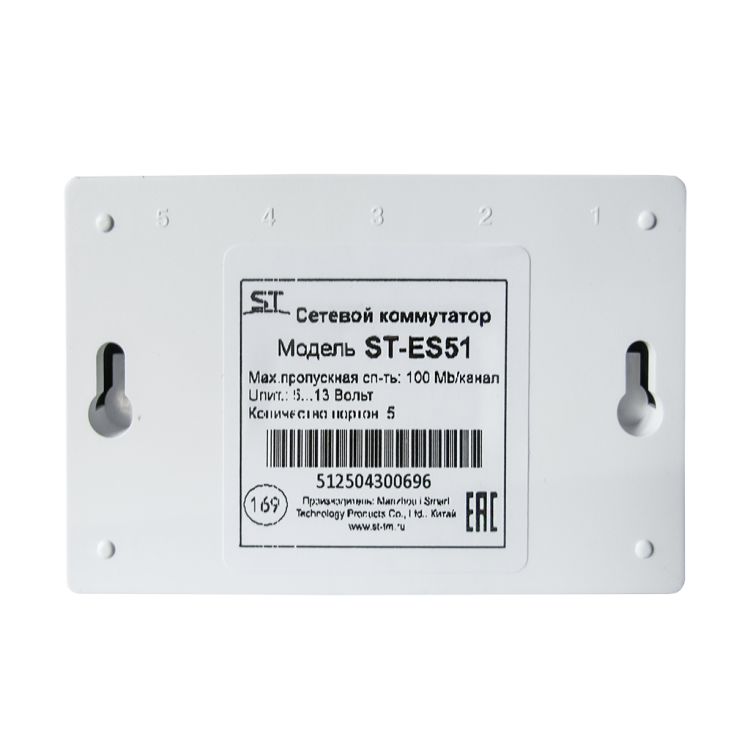 ST-ES51, Cетевой 5-ти портовый коммутатор,обеспечивает подключение сетевых клиентов со скоростью до 100 Мб/с.Имеет широкий диапазон питающих напряжений - от 5 до 13 Вольт, что позволяет применять его для решения различных задач при организации систем видеонаблюдения, Ethernet порты: 5 х (10/100Мбит/с), Max.пропускная сп-ть: 100 Мбит/канал, Uпит(В): 5...13В (±10%), Стандарт сети: IEEE802.3u,IEEE802.3x,IEEE802.3ab, Пластик, От 0°C до +40°C, 82х51х22 мм