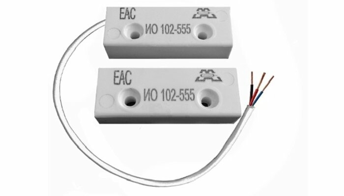 Магнитоконтактный для металлических поверхностей; контакты переключаются при тревоге, 5 мм (контакты замкнуты), 15 мм (контакты разомкнуты); U-коммут.72 В, I-коммут.500 мА, P-коммут.10; IP66, t-раб.-50…+85°С, 40х15х10 мм (геркон), 40х15х10 мм (магнит). Длина выводов 180 мм. Пластиковый корпус.