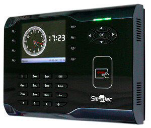 Проксимити терминал учета рабочего времени. Работа под управлением ПО Timex. Память на 10 000 пользователей, 50 000 событий, время идентификации <1 c, русский/английский, ЖК-дисплей 3,5", 8 функциональных клавиш, вывод фото, встроенный считыватель EM-Marin, 12 В, 0,5 А, БП в комплекте, 192х137х45 мм