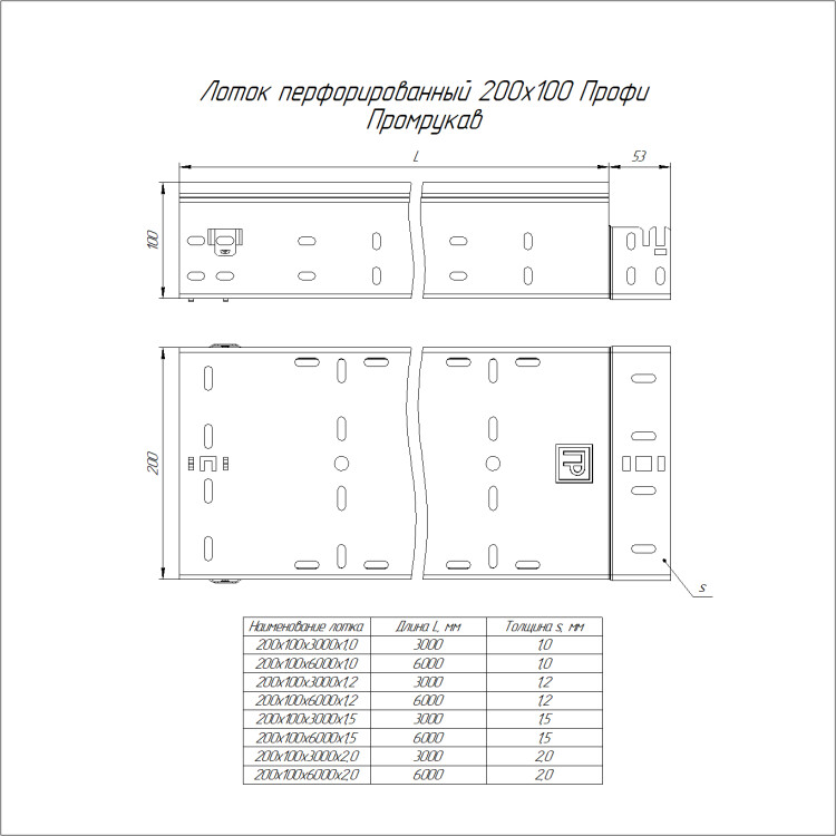 PR16.13433 Лоток перфорированный Профи INOX (AISI 304) 200х100x6000 (2,0 мм) (12 м/уп) Промрукав